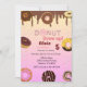 Einfach gewollt, um zu verpassen, Thema Geburtstagsparty Einladungen mit Schokolade Donut, Erdbeeren Donut.