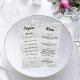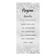Geburtstagsparty auf der Vorderseite und das Menü auf der Rückseite. Personalisieren und fügen Sie einen Namen, Alter, Datum, Programm auf der Vorderseite und ein Menü auf der Rückseite. Ein stilvolles Imitat silber aussehend, mit Imitaten verziert silberne Konfetti. Schwarze Buchstaben.