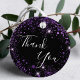 Eine gmädchenhafte und trendige Liebesmarke für eine 21. Geburtstagsfeier (oder jedes Alter). Ein stilvoller schwarzer Hintergrund mit lila Imitaten Glitzer Staub. vorne: Der Text: Danke ist mit einem großen angesagten, handgeschriebenen Stilskript geschrieben. Zurück: Der Text: Danke, dass du gekommen bist. Personalisieren und fügen Sie einen Namen und Alter 21.