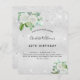 Eine moderne, stilvolle und glamouröse Einladung für die 40. (oder jedes Alter) Geburtstagsfeier einer Frau. Ein Imitat silbermetallischer Hintergrund mit Imitaten silberner Glitzer Staub und weiße Blumen und Grün. Der Name ist mit einem modernen, schwarzen Handschrift geschriebenen Stil geschrieben. Personalisieren und fügen Sie einen Namen, ein Alter und Ihre Party-Daten hinzu