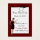 Hübsche Art-Déco-Stile Save the Date Geburtstagsankündigungen, in Rot, Schwarz und Weiß gehalten. Ein hübsches Digitalbild eines rauschenden Flappers aus den 20er Jahren schmückt den links Boden der Karte, mit einem dunkelroten Rahmen um den weißen Textbereich und einem schwarz-dekorativen Bildlauf, der oben geblüht wird. Schwarz und Rot sind vollständig an Ihre Bedürfnisse anpassbar.