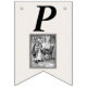 Diese Fahne geformt Banner Happy Birthday ist weiß mit einer Vintagen Abbildung in Schwarz-Weiß von kleinen roten Haube mit dem Wolf im Wald unter Bäumen in einem verzierten schwarzen Rahmen. Passen Sie den Geburtstagstext und das Geburtstagsjahr mit den Vorlagen an.