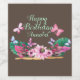 Schöne und elegante Blume und Schmetterlingsweinetiketten in dunklem irdischem Hintergrund mit rosa, sanft blauen, lavendelfarbenen Schmetterlingen und Lavendel-Blume in einem tropischen Ambiente. Zitat aus einem leichten Pfefferminztext: "Herzlichen Glückwunsch zum Geburtstag..." Die Option zum personalisierten Geburtstagsnamen ist verfügbar. Design © von Nayda Liz Rivera
