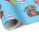Dieses Geburtstagsblatt enthält einen festlichen Affen aus Party mit Ballons und einem Party Hut. Das Papier ist blau, was ein großartiger Hintergrund für den Affenprint ist. Kindern, besonders Jungen, wird diese niedliche Geschenkpackung gefallen.