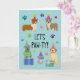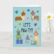 Das ist eine niedliche Geburtstag-Karte mit fünf Hunden, die Party-Hüte tragen. Es hat ein paar Geschenke und Pfoten mit dem Worttext "Lass’s Paw-ty!".