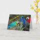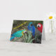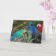 Die Feder-versierte Gruß-Karten des Scharlachrots mit Begleiter-Papageien-Haltung