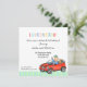 die Einladungen der Kinder, die dieses Jungen Geburtstags-Party hat einen Jungen zu fahren in einem roten Spielzeugauto auf ihr einladen. Sein niedlicher Hund reitet entlang in die Rückseite. Die Unterseite hat eine grüne und blaue gestreifte Grenze. Sie können Ihre Partyinformationen in der Mitte leicht besonders anfertigen. Amerikanischer Nationalstandard Collijn©