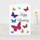 Schöne Schmetterlinge, die um die Geburtstags-Karte in den verschiedenen Farben tanzen,