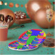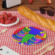 Geburtstags Teller mit einem bunten Pop Art cake Design.