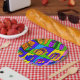 Geburtstag Teller mit einem bunten Pop Art Geschenk Design.