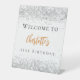 Geburtstags-Weißsilber-Glitzer-Gold-Empfang Sockelschild