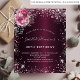 Für eine elegante 40. Geburtstagsfeier (oder jedes Alter). Ein bordeauxrotes Imitat mit metallisch anmutender Hintergrundfarbe. Rosa Imitate mit Glitzer Staub und Blumen dekoriert. Personalisieren und fügen Sie Namen, Alter und Party Details hinzu. Der Name wird mit einem handgeschriebenen Stilskript geschrieben