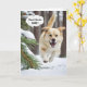 Gelbes Labrador Retriever im Winterwald zum Geburtstag Spaß. Alle Texte können geändert werden.