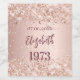 Ein Flaschenetikett für eine mädchenhafte und glamouröse 50. Geburtstagsfeier (oder jedes Alter) mit den Mädchen. Eine Rose goldener Hintergrund mit einem eleganten Imitat Rose Gold Konfetti. Der Text: Der Name ist in dunklem Rose Gold geschrieben, mit einem großen, modernen Schriftsatz. Personalisieren und fügen Sie ein Datum, einen Namen und ein Jahr der Geburt.