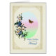 Eine schöne BlumenGeburtstagskarte für einen Freund. Ein wunderschöner Blumenstrauß mit blauen und weißen Blume und einem braunen Schmetterling. Das Bild hat einen zarten goldenen Rahmen.
