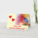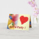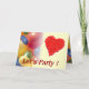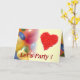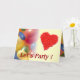 Farbige Ballons und rote Herzen auf gelber Ankündigung: "Lasst uns Party machen!" Im Inneren der Karte wünschen wir Ihnen einen schönen Geburtstag. Sie können Text und Farbe auch personalisieren, wenn Sie es vorziehen