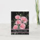 Die Geburtstagskarte wird mit schwarzem Hintergrund und hübsch rosa Nelken angezeigt. Die Karte hat eine spezielle Meldung im Inneren. Passen Sie diese Karte an oder kaufen Sie, wie es ist. Bild