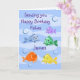 Eine Gruppe von glücklichen Fischen, um Ihnen einen guten Geburtstag zu wünschen, kann personalisiert werden, indem Sie auf die Eingabeaufforderung 'Personalize this Template' klicken.