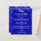 Ein königlich blauer Hintergrund. Weißer Text. Dekoriert mit Imitaten silbernen Glitzer, Glitzern. Front: Personalisieren Sie Ihren Namen, das Datum und das Menü. Zurück: Fügen Sie Ihr eigenes Foto und lustige Fakten über die Geburtstagsgürtel hinzu. Entfernen Sie gegebenenfalls die Namen. 1 Blatt = 1 Menü, mit dem die Kante an Kante aufgedruckt ist.