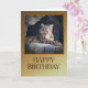 Eine Geburtstagskarte mit einem Regalschneeleopard, der in seiner Höhle liegt.