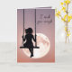 Silhouette Mädchen auf einer Schaukel mit Vollmond im rosa Himmel. Alle Texte können bearbeitet werden.