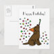 Einzigartiger und lustiger Labrador Retriever Cartoon von Naomi Ochiai aus Japan. Ein niedlicher Schokoladenbär feiert seinen Geburtstag mit einem Geburtstagshut und einem Pfeifen! Spaß Cartoon. Ein tolles Geschenk für Hundefreunde, die Schokolade Labradors besitzen! Zum Geburtstag. Sie können Text anpassen.