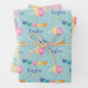Drei Blätter koordinierter Geburtstagsverpackung für Ihr Geburtstagsmädchen. Es ist blau mit Ballons und Bannern und man personalisiert es mit dem Namen der Geburtstagsmädchen. Es gibt gelbe und weiße Polka-Punkte mit Ballonbuquets und man personalisiert sich mit ihrem Alter, und es gibt rosa mit weißen Polka-Punkten, Regenbögen und Schmetterlingen. Mix und Spiel und stapeln Sie die Geschenke für eine schöne Geburtstagsüberraschung!