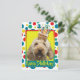Feiern Sie einen Geburtstag mit dieser whimsical Golden Doodle Dog Grußkarte. Mit einem Kuchen auf dem Kopf wird dieses Design sicher ein Lächeln und ein Giggles bringen! BTW, Dieses Design hat mehrere Versionen, mit verschiedenen Hintergrundfarben. Es gibt auch eine Einladung zu einer Party-Version.
