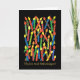 Carte d'anniversaire aux couleurs vives avec bougies et "Joyeux anniversaire" en danois, d'un collage de papier peint à la main par Judy Adamson.
