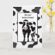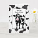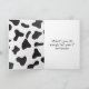 Niedliche Kuh aus Cartoon mit schwarz-weißem abstrakten Kuhdruck zum Geburtstag. Alle Texte können bearbeitet werden.