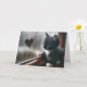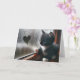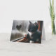 Ein merkwürdiges, schwarz-weißes Kätzchen thront durch ein regnerisches Fenster, in dem auf dem nebeligen Glas eine Herzform gezeichnet wird. Inside text kann geändert werden.