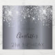 Für eine mädchenhafte und glamouröse 21. Geburtstagsfeier mit den Mädchen. Ein Imitat silber metallisch aussehender Hintergrund mit Imitaten Glitzer Staub. Der Text: Der Name ist schwarz geschrieben mit einem modernen handgeschriebenen Stilskript. Personalisieren und fügen Sie einen Namen, Alter 21 und ein Datum. Geburtsdatum oder Geburtsdatum des Party.