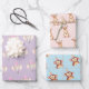 Geburtstagsparty Thema Geschenkpapier mit einem Elefanten Affe und Känguru mit Party Hüten auf den Köpfen.
