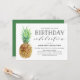 Besuchen Sie die Geburtstagsfeier zum Thema Tropen mit unserer stilvollen Watercolor Ananas Geburtstagsparty. Die Tropische Geburtstagsparty lädt mit einer bemalten Aquarellananas und "Geburtstagsfeier" in einem trendigen, handgeschriebenen Schriftart ein, der durch eine moderne Kalligraphie ergänzt wird. Personalisieren Sie die Ananas Geburtstagsfeier lädt ein, indem Sie den Namen und das Party des Geburtstags oder Jungen hinzufügen. Auf der Rückseite des Einladens befindet sich eine tropisch grüne Hintergrundfarbe mit viel Platz für Text oder Fotos.