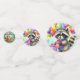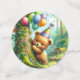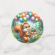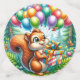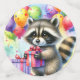 Woodland-Kreaturen thematisierten Geburtstagsfeier für ein Kind oder Mädchen. Aquarellaccoon, Eichhörnchen und Bären mit bunten Ballons in grün, gelb, orange, rosa, lila und blau.