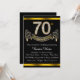 Elegante Gold- und Diamantenzahlen und Banner schwarz und gold 70. Geburtstagsfeier Einladung. Diese schöne Schwarz-Gold-Einladung zum 70. Geburtstag ist für Ihre Veranstaltung leicht angepasst. Dieses auffallende Design funktioniert gut für einen Mann oder eine Frau.