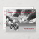 Geburtstagsfeier Postkarte für einen 70-jährigen Mann. Das Thema werden LKW und die Einladung hat einen alten großen LKW auf der Vorderseite. Das Design ist schwarz und weiß, und das Schreiben auf der Karte ist rot. Alle Wörter auf der Karte können nach Ihren Wünschen geändert werden, einschließlich des Namens, der von den anderen Wörtern getrennt ist.