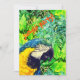 Jungle Party, willkommen zum Geburtstag zu feiern. Ein Aquarellbild eines blau-gelben Ara im Dschungel