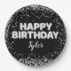 Schwarz-Weiß-Geburtstagsfeier Teller für ein lustiges Party mit einem modernen klassischen Look mit Glitzer- und Folienballons auf personalisierten Papier-Tellern.