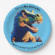Roaring Dinosaurier Geburtstagsfeier Teller. Editierbar für einfache Personalisierung.