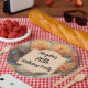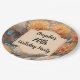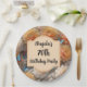 Feiern Sie jedes Alter mit einer schönen, individuell anpassbaren Papierplatte. Herrliche Rosa- und Orangenchrysanthemen mit blauen Schmetterlingen und üppiger Vegetation. Ein elegantes und dennoch hübsches Design.