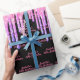 Elegante, trendige, glamouröse und feminine Party-Packpapier zum 50. Geburtstag. Ein schicker schwarzer Hintergrund mit regenbogenfarbenen Imitaten Glitzer Tropfen, Farbe Tropfen in lila, rosa und Rose Gold. Personalisieren und fügen Sie ihren Namen und Alter 50 rosa Buchstaben Skript.