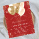 Für eine elegante 18. Geburtstagsfeier (oder jedes Alter). Ein trendiger roter Hintergrund. Mit goldenem Glitzer, Glitzern und Ballons dekoriert. Personalisieren und fügen Sie Namen, Alter und Party Details hinzu. Der Name wird mit einem handgeschriebenen Stilskript geschrieben