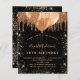 Für eine elegante 18. Geburtstagsfeier (oder jedes Alter). Ein stilvoller schwarzer Hintergrund. Der vergoldete Glitzer und die Ballons sind mit dunklen Imitaten dekoriert. Personalisieren und fügen Sie Namen, Alter und Party Details hinzu. Der Name wird mit einem handgeschriebenen Stilskript geschrieben