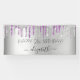 Ein Banner für eine mädchenhafte und glamouröse 21. (oder jedes Alter) Geburtstagsparty. Ein Imitat silber metallisch aussehender Hintergrund mit eleganten lila und Imitate silberne Glitzer Tropfen, Farbe Tropflook. Der Text: Personalisieren und fügen Sie einen Namen in dunkler Rose Gold mit einem großen modernen handgeschriebenen Stil Skript geschrieben. Perfekt sowohl als Begrüßungsbanner als auch als Party.