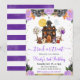 Niedlicher Wasserfarben-Trick oder Treat Halloween-Design mit Spuk Haus-, Bär-, Fuchs-, Hund- und Waschbären in Kostümen, einem Geist und lila und schwarzen Blume