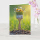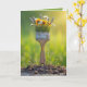 Eingebettet in den Boden, hält ein Pinsel kreativ einen Blumenstrauß, Sonnenblumen und andere Wildblumen zum Geburtstag. Der Insider-Text kann geändert werden.