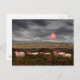 Farbenfrohe Schafe mit einem Happy Birthday Ballon, Rhossili, Gower, South Wales