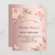 Rose Gold, Farbverlauf. Die Einrichtung besteht aus Rose-Gold und rosa Blumen, Rose, Pampas-Gras und Schmetterlingen. Personalisieren und fügen Sie einen Namen und Party-Details hinzu.