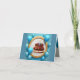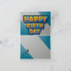 Eine festliche Geburtstagskarte mit einem klassischen Geburtstagskuchen mit farbenfrohen Zuckergüssen und Kerzen. Fünf farbige Ballons mit kurbelnden Bändern schweben über dem Kuchen. Der Hintergrund ist ein klarer, blauer Himmel. Auf der Innenseite des Kartenbildes ist ein blauer Hintergrund mit dem Text "GLÜCKLICHER GEBURTSTAG" in einem Schriftart.